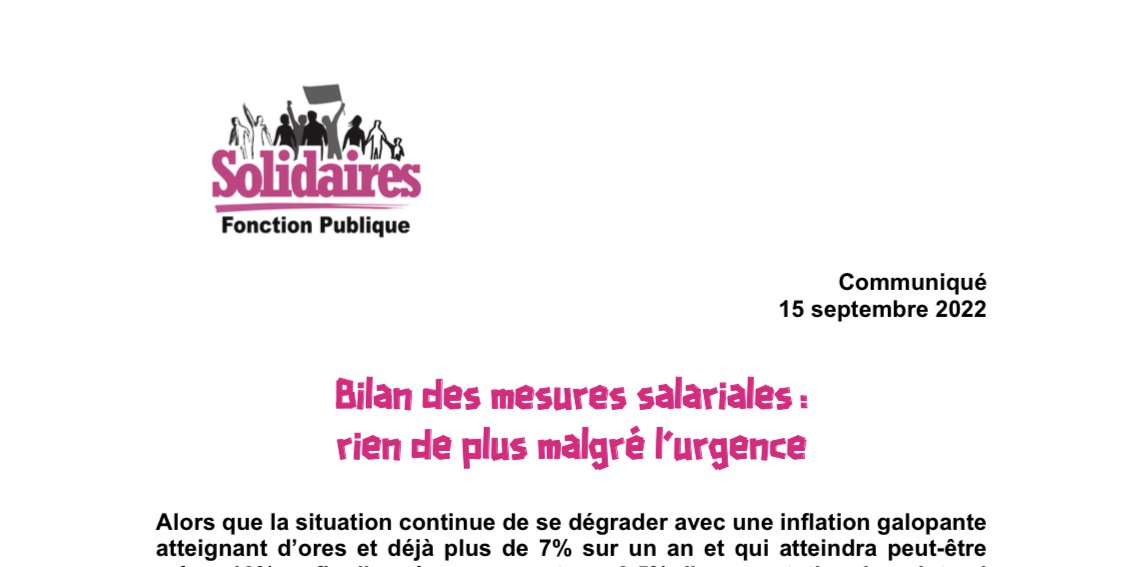 Solidaires FP appelle l’ensemble des agent-es publics à participer à la journée de grève et manifestations pour les salaires du 29 septembre prochain.