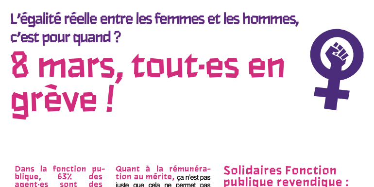 Dans la fonction publique, 63% des agent·es sont des femmes, dont une grande majorité en catégorie C. Il est donc plus que temps de prendre des mesures concrètes pour enfin atteindre l’égalité réelle entre les femmes et les hommes.