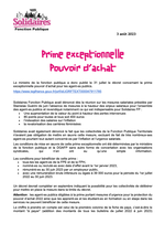 Communiqué Solidaires Fonction publique - Prime exceptionnelle pouvoir d'achat