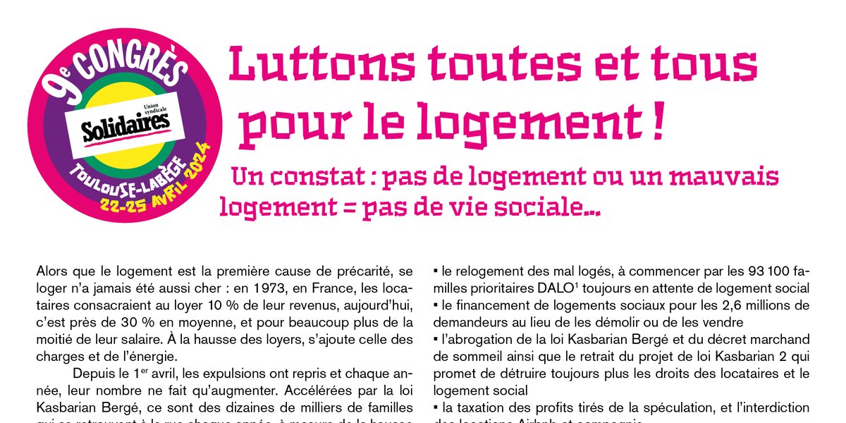 Le logement est perçu comme une préoccupation individuelle, il n’en est rien, c’est un enjeu de société majeur et un bien commun. C’est un droit collectif que nous devons défendre et enrichir. Il est temps de réagir, luttons pour un logement pour touTEs, pas de profit sur nos vies !