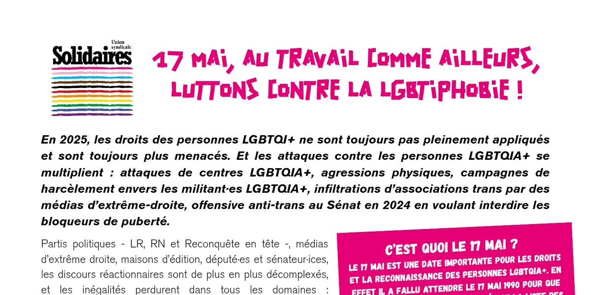 Partis politiques - LR, RN et Reconquête en tête -, médias d’extrême droite, maisons d’édition, député·es et sénateur·ices, les discours réactionnaires sont de plus en plus décomplexés, et les inégalités perdurent dans tous les domaines : discriminations à l’emploi et au logement, inégalité des droits en termes de filiation ...
