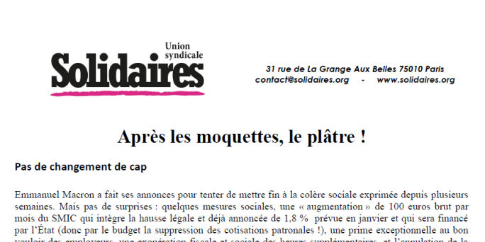 - L'interview d'Eric Beynel, porte parole de Solidaires, sur Libération.fr : "Allocution de Macron : «Il y a beaucoup de maquillage dans ce discours»