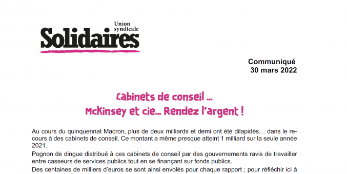 Les cabinets de conseil prennent l’argent de l’Etat mais font en sorte de ne jamais participer à l’effort collectif au travers de l’impôt. La population et les services publics n’ont pas besoin d’eux.