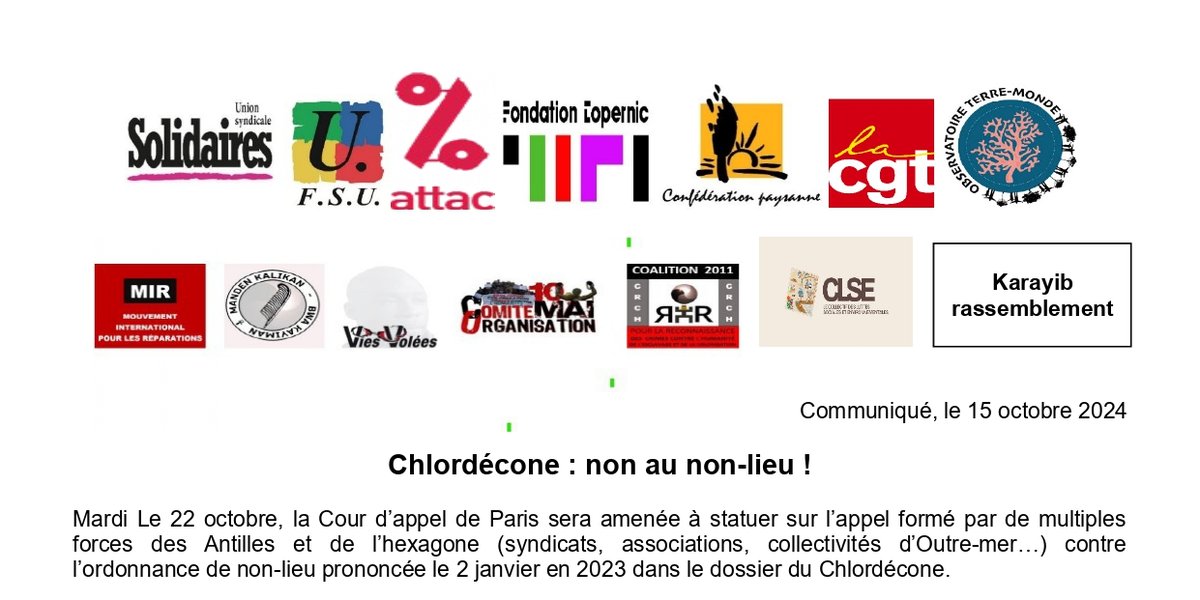 Le mardi 22 octobre, la Cour d’appel de Paris sera amenée à statuer sur l’appel formé par de multiples forces des Antilles et de l’hexagone (syndicats, associations, collectivités d’Outre-mer…) contre l’ordonnance de non-lieu prononcée le 2 janvier en 2023 dans le dossier du Chlordécone.