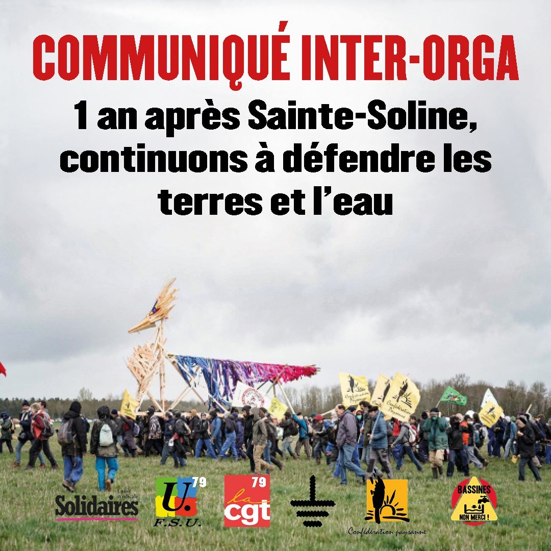 Communiqué commun de BNM 79 / 86, Confédération Paysanne, Soulèvements de la terre, Solidaires, CGT 79, FSU 79