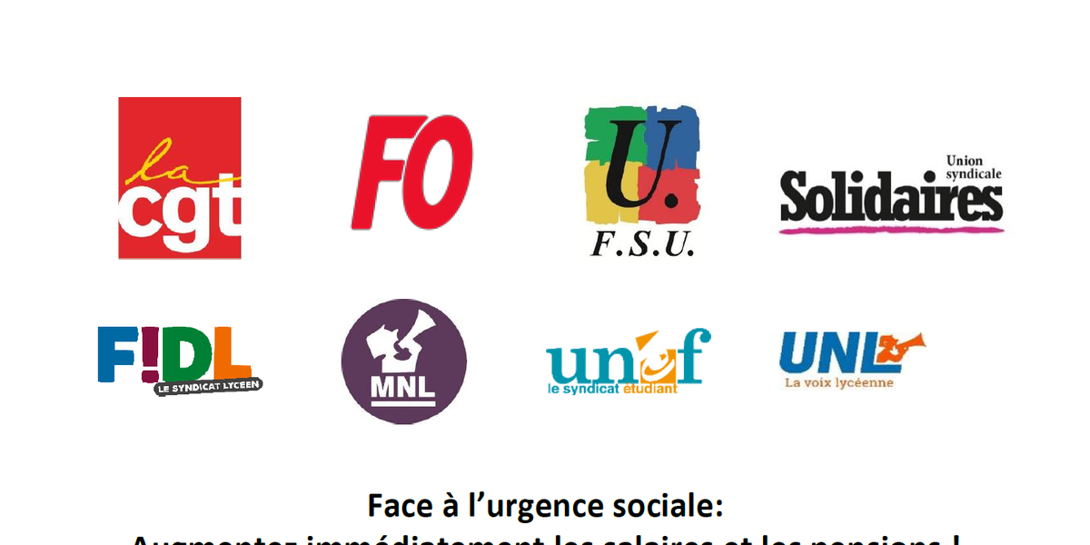 Pour les organisations CGT, FO, FSU, Solidaires, Fidl, MNL, Unef et UNL, il est urgent d’augmenter tous les salaires, des travailleurs et travailleuses du privé comme du public, des jeunes, ainsi que les pensions des retraité-es.
