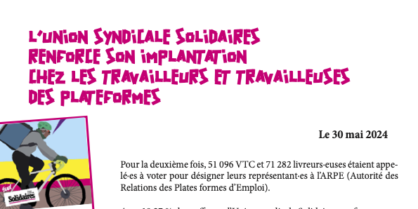 Il s’agit d’une étape importante pour le renforcement de notre capacité d’action. En parallèle de notre action de terrain, nous poursuivons également notre action juridique. Ainsi, du 5 au 14 juin se tiendra le procès en appel de Deliveroo à la Cour d’Appel de Paris, condamnée en première instance à 375 000 euros d’amende pour travail dissimulé. Par ailleurs l’Union syndicale Solidaires se portera partie civile sur la même thématique lors des procès de Frichti et Foodora.