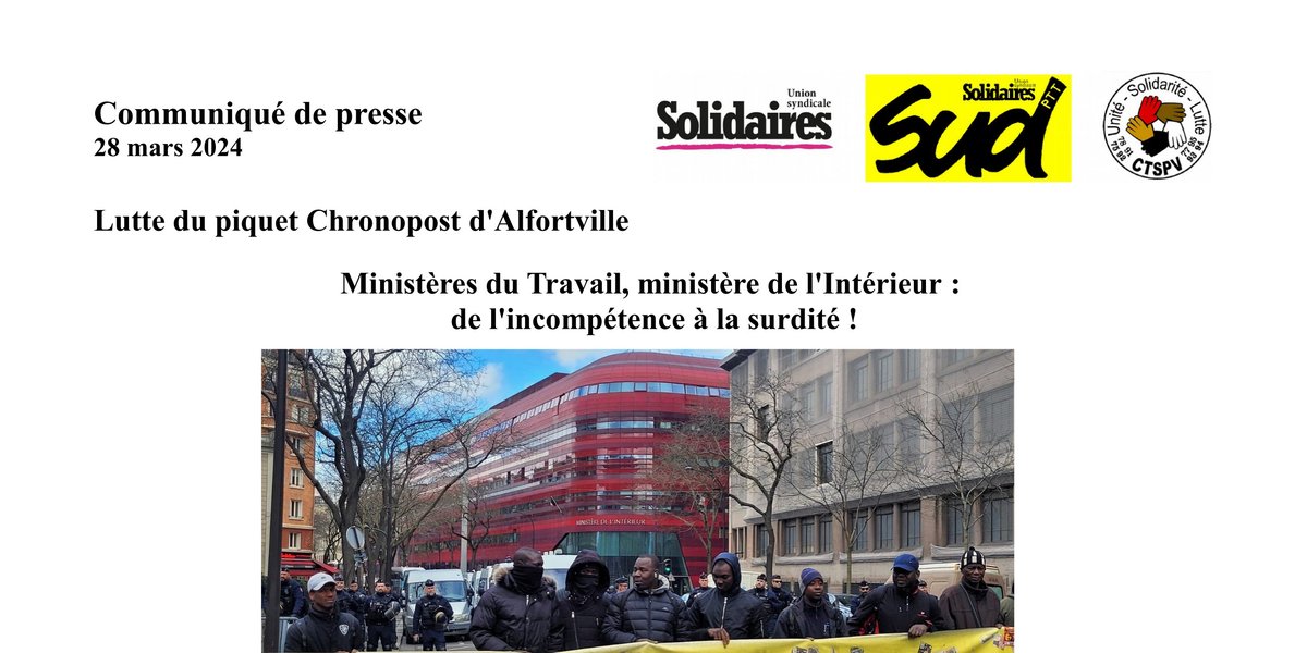 Lutte du piquet Chronopost d'Alfortville - Ministères du Travail, ministère de l'Intérieur : de l'incompétence à la surdité !