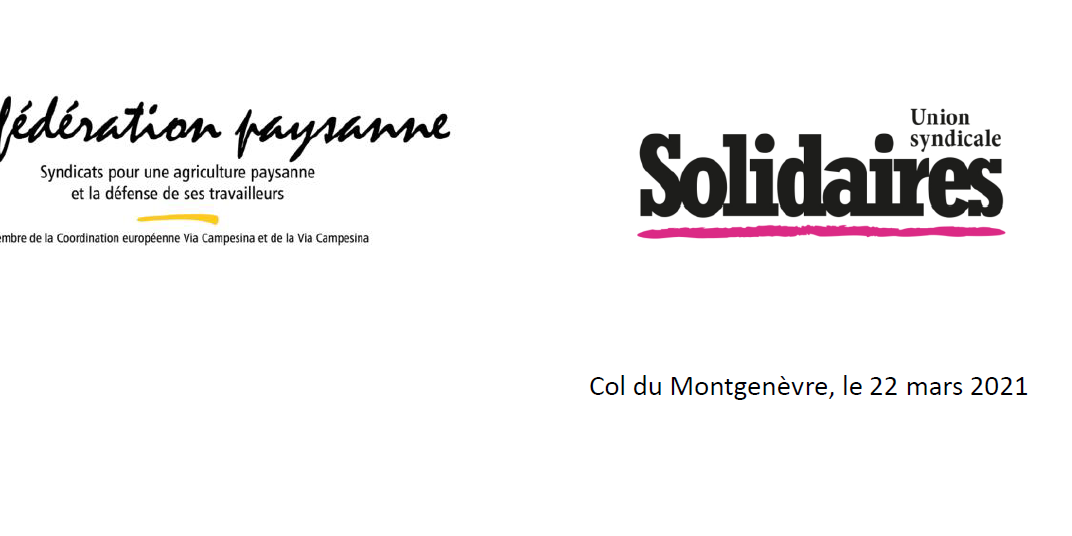Ce samedi 20 mars, la Confédération paysanne et l’union syndicale Solidaires ont mené une maraude et organisé une manifestation en solidarité avec les exilé-e-s au col du Montgenèvre dans les Hautes-Alpes, point de passage de migrant-e-s à la frontière franco-italienne.