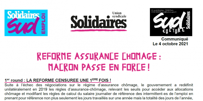 … sauf que le futur candidat Macron a besoin de cette réforme pour plaire à son électorat. Et hop l’Etat, sans attendre le Conseil d’Etat, de publier un nouveau décret le 30 septembre, fac similé de celui suspendu, pour une application …. au 1er octobre 2021 ! Ce qui signifie un recours en référé par les organisations syndicales alors que le texte sera déjà appliqué même si les juges n’auront pas statué. Ceux-ci seront plus frileux pour remettre en cause un décret lorsque celui-ci sera déjà entré en application. Un vrai scandale ! D’ailleurs la DG de Pole emploi est tellement consciente des conséquences dramatiques de la réforme qu’elle a prévu de fournir des bracelets d’alerte aux conseiller-es en Ile de France !