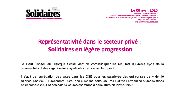 Le Haut Conseil du Dialogue Social vient de communiquer les résultats du 4ème cycle de la représentativité des organisations syndicales dans le secteur privé.