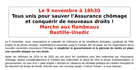 Face à la multiplication des attaques contre les travailleurs privés d’emploi et précaires, dans un contexte de chômage de masse, d’augmentation de la précarité et d’augmentation du coût de la vie, unissons-nous pour imposer une véritable protection contre le chômage et la précarité, le principal fléau de notre siècle !