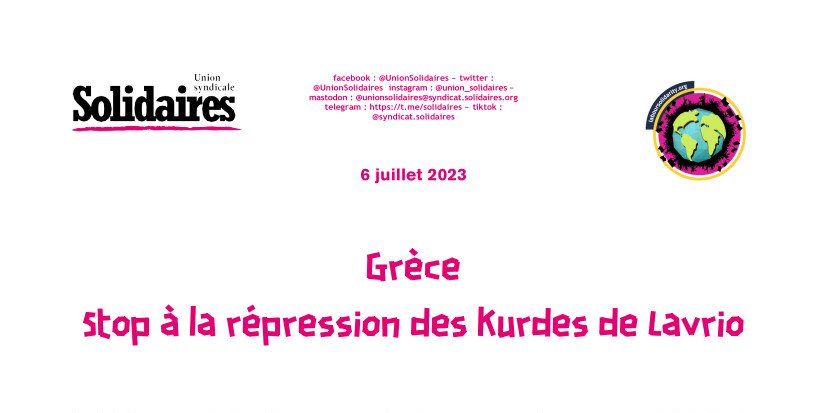 L'union syndicale Solidaires affirme son soutien aux exilé.es de Lavrio et appelle à ne pas céder face aux exigences de l'État turc en sacrifiant les vies des Kurdes.