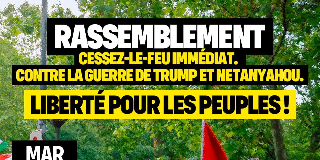 Contre la guerre de Trump et Netanyahou et contre le génocide à Gaza, nous appelons à Paris à un rassemblement mardi 24 juin à 19H00, place Saint Augustin.