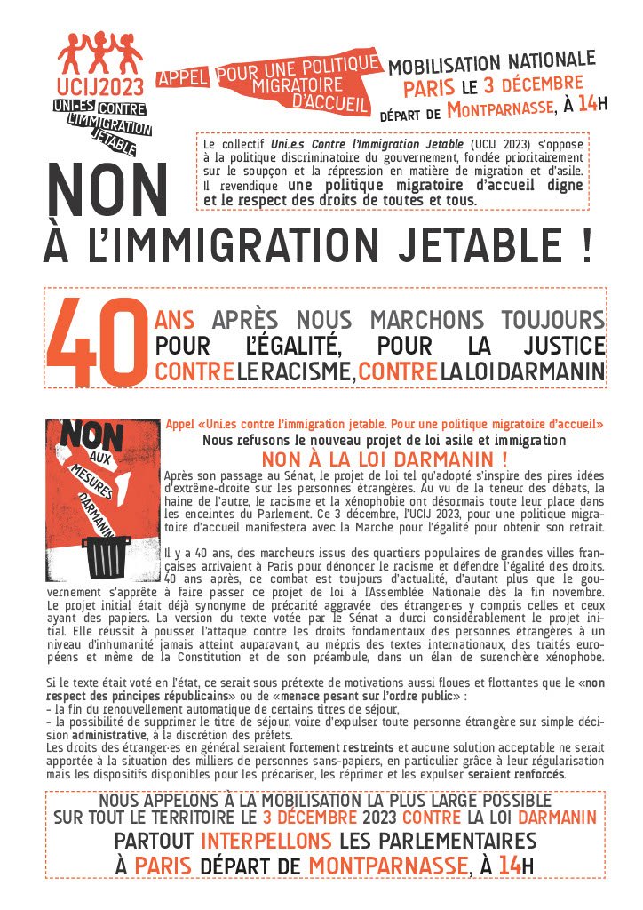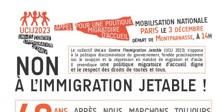 C'est pourquoi l'UCIJ appelle à se mobiliser ce 3 décembre avec celles et ceux qui se rassembleront pour l'anniversaire de la marche de 1983.