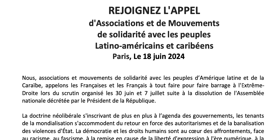 Nous, associations et mouvements de solidarité avec les peuples d’Amérique latine et de la