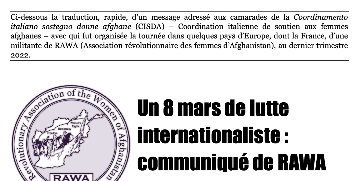 Un 8 mars de lutte internationaliste : communiqué de RAWA