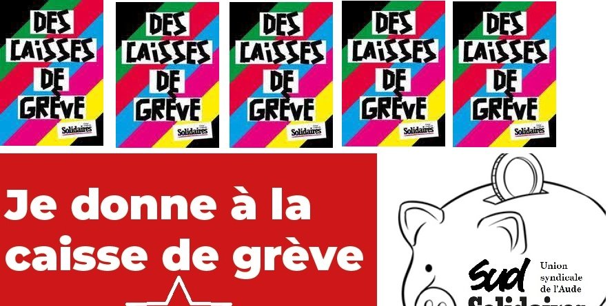 Un ENOOOOOOOORME merci à celles et ceux qui ont déjà alimenté la caisse de grève de l'union syndicale SOLIDAIRES de l'Aude en donnant en ligne, en envoyant des chèques à notre adresse ou en donnant directement dans la caisse ambulante pendant les manifestations à Narbonne comme à Carcassonne !