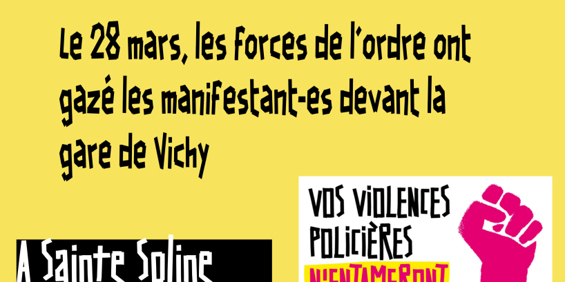 Le 28 mars à Vichy les forces de l'ordre ont franchi un cap dans la répression. Alors que les manifestant-es étaient décidé-es à faire une action symbolique en rentrant dans le hall de la gare, les renseignements généraux sont venus dire aux représentants syndicaux que s'ils maintenaient cette action, des poursuites pénales seraient engagées contre eux.