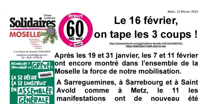Après les 19 et 31 janvier, les 7 et 11 février ont encore montré dans l ’ensemble de la Moselle la force de notre mobilisation.