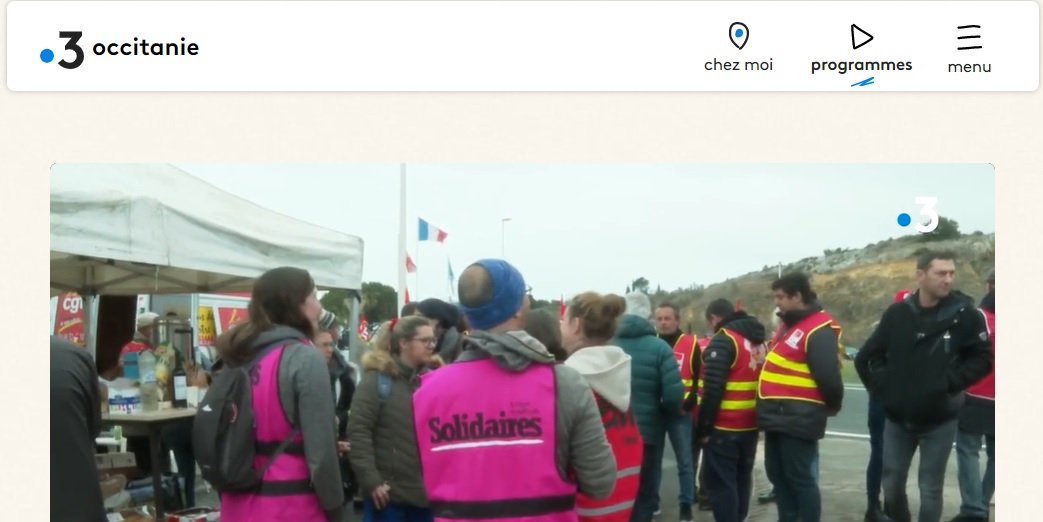 • Le blocage de Port la Nouvelle au journal de France 3 Languedoc Roussillon intervention d’un camarade de SUD SOLIDAIRES
