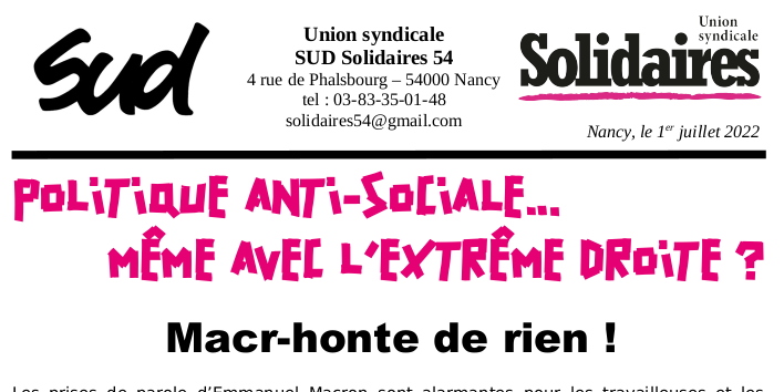 POLITIQUE ANTI-SOCIALE… MÊME AVEC L’EXTRÊME DROITE ? Macr-honte de rien !