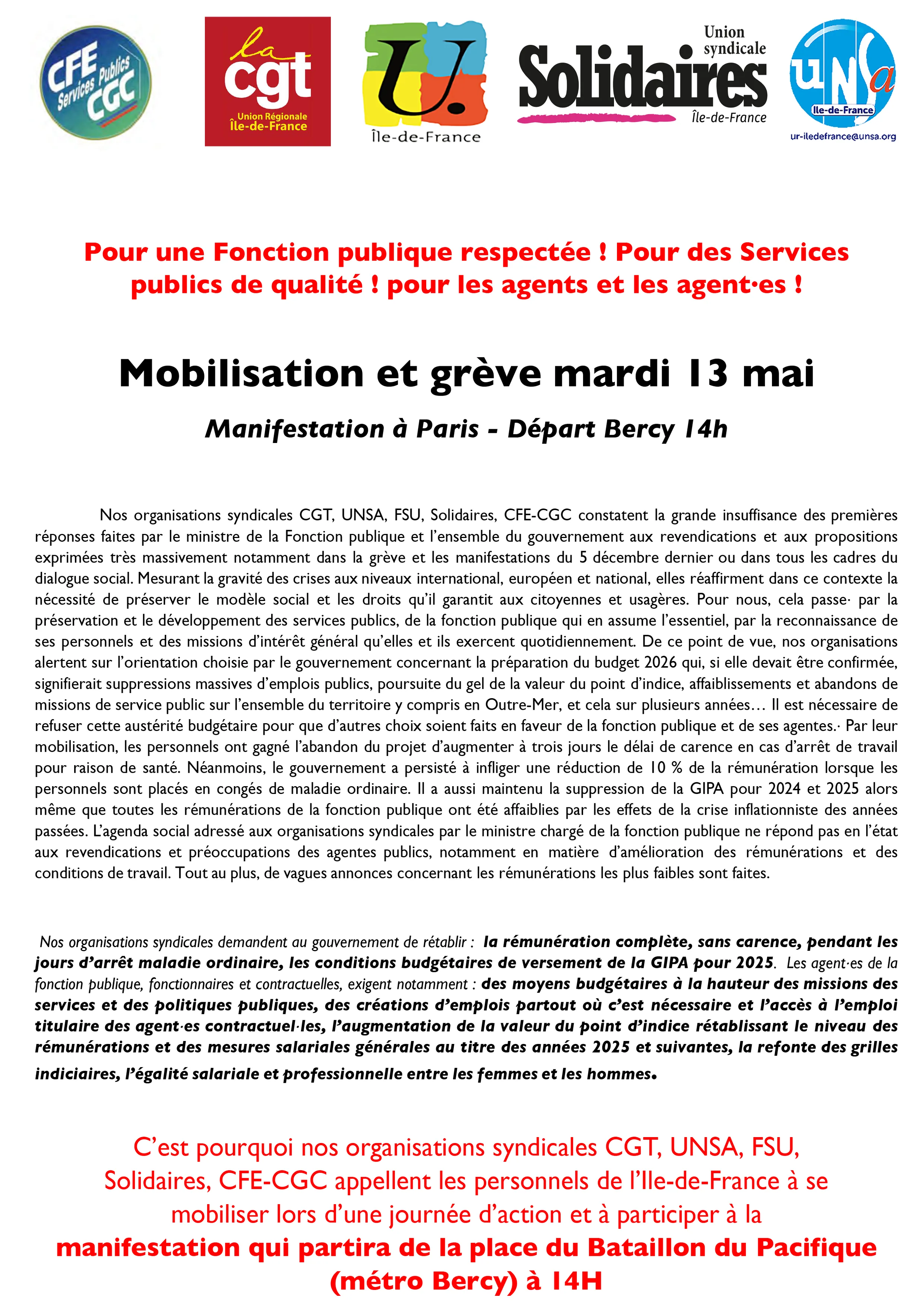 Pour une Fonction publique respectée ! Pour des Services publics de qualité ! pour les agents et les agentes !