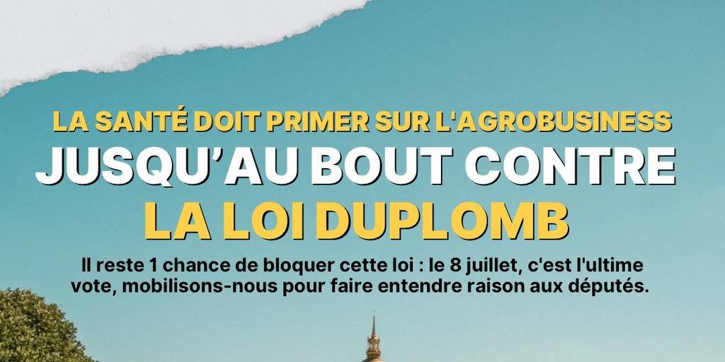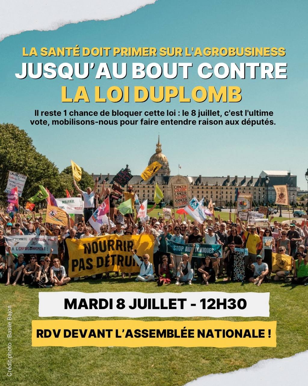 Il reste une chance de bloquer la proposition de loi Duplomb : le 8 juillet, c'est l'ultime vote, mobilisons-nous pour faire entendre raison aux député-es.