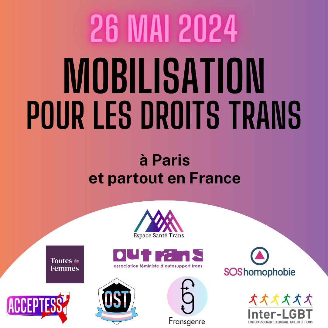 A lire et à signer ici : https://toutesdesfemmes.fr/le-26-mai-mobilisons-nous-pour-les-droits-trans/