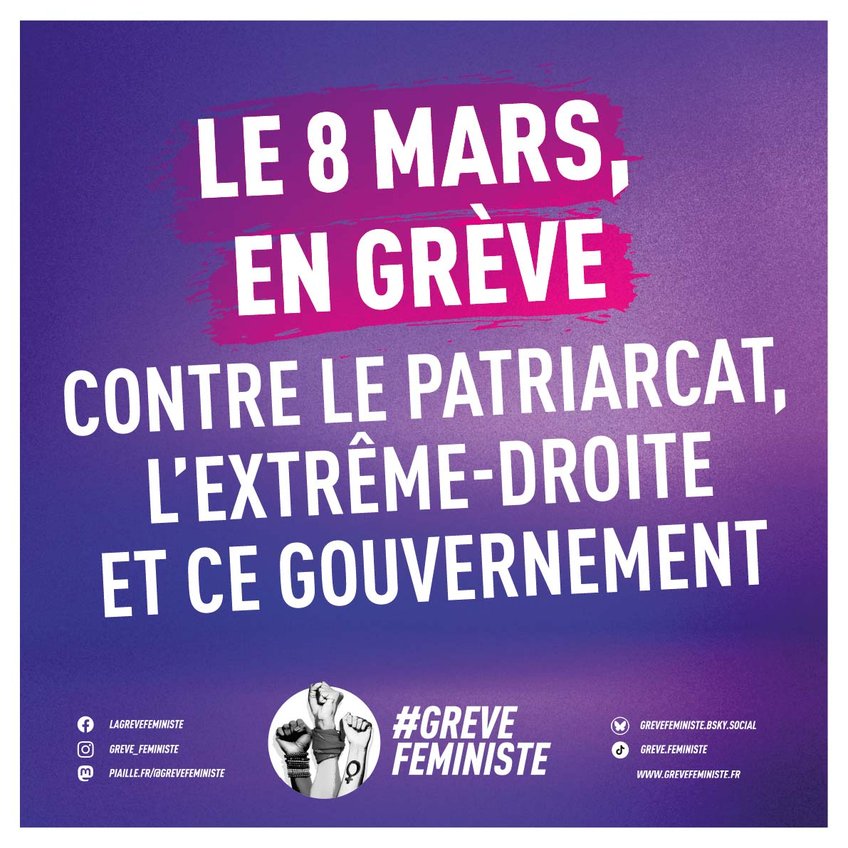 Pour le 8 mars 2024, les confédérations et fédérations syndicales nationales CGT, FSU, Solidaires, UNSA et CFDT ont déposé un préavis de grève. Il suffit de toute façon qu’une seule organisation dépose un préavis de grève pour le 8 mars pour que n’importe quel-le salarié-e soit couverte.
