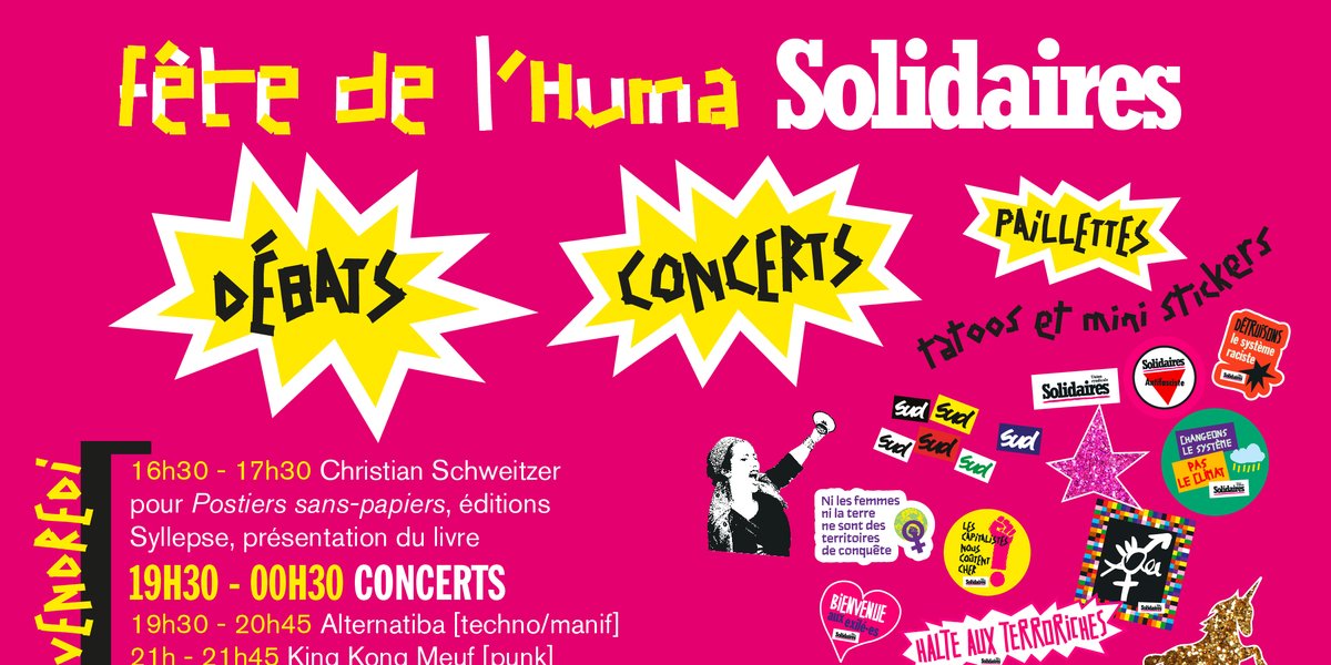 - 14h30-16h : Quel rôle du syndicalisme dans l’urgence de la lutte contre l'extrême droite en France et en Europe ? Avec, sous réserve, le SNJ (syndicat national des journalistes), la CGT, la FSU, la CFDT, VISA et Solidaires