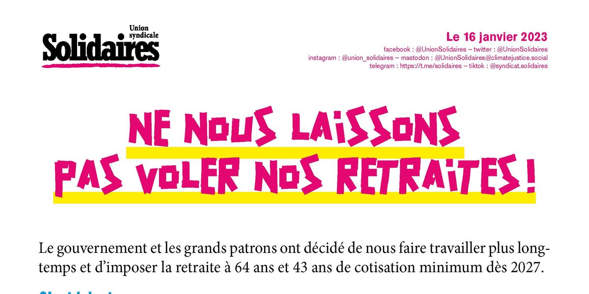 La bataille pour nos retraites a commencé. Il faut se mettre en grève. Il faut participer aux manifestations. Nous avons les moyens de les faire céder et défendre nos retraites.