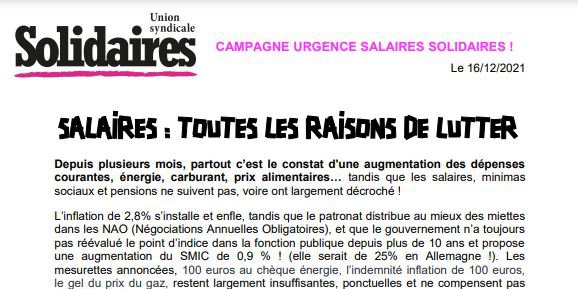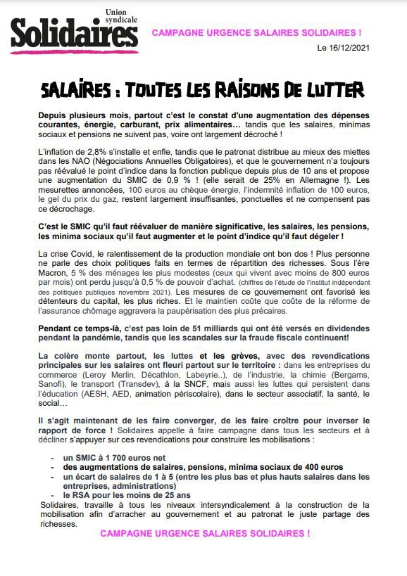 La colère monte partout, les luttes et les grèves, avec des revendications principales sur les salaires ont fleuri partout sur le territoire : dans les entreprises du commerce (Leroy Merlin, Décathlon, Labeyrie..), de l’industrie, la chimie (Bergams, Sanofi), le transport (Transdev), à la SNCF, mais aussi les luttes qui persistent dans l’éducation (AESH, AED, animation périscolaire), dans le secteur associatif, la santé, le social…