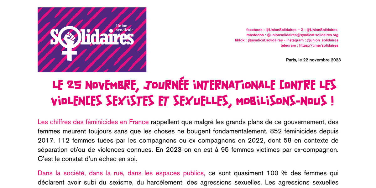 Depuis plusieurs années, Solidaires, avec d’autres organisations syndicales et féministes réclament :