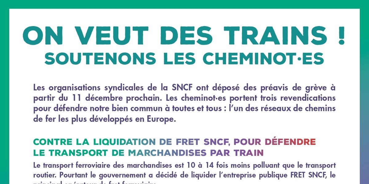 - Contre la liquidation de FRET SNCF, pour défendre le transport de marchandises par train, protéger l'emploi et l'environnement.