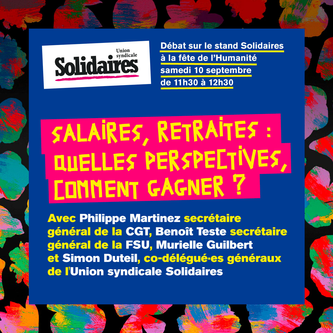 Avec : Philippe Martinez secrétaire générale de la CGT, Benoît Teste secrétaire général de la FSU, Murielle Guilbert et Simon Duteil, co-délégué.es généraux de l'Union syndicale Solidaires.