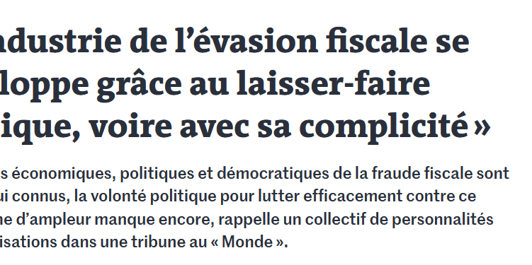 Pour tous ceux et celles qui ont à cœur la défense de notre modèle social, pour tous ceux et celles qui ont à cœur la réduction des inégalités, pour tous ceux et celles qui considèrent l’urgence de la transition écologique, il y a un combat qui tous et toutes nous réunit : en finir avec « la (très) grande évasion » fiscale. Qu’elles portent sur la coopération internationale ou les moyens juridiques, matériels et humains, les propositions réalistes et efficaces ne manquent pas : reste à avoir, en France et dans les autres pays, une réelle volonté politique pour les mettre en œuvre.