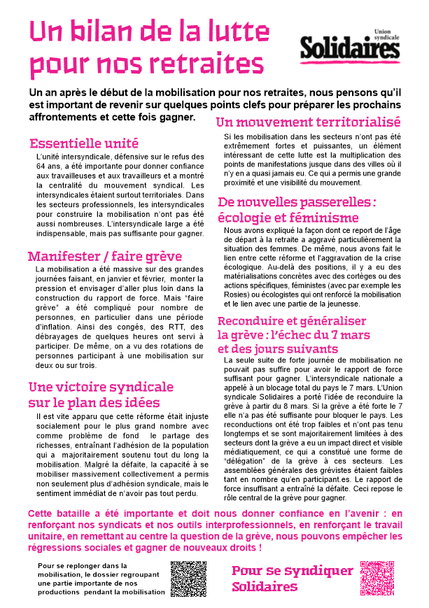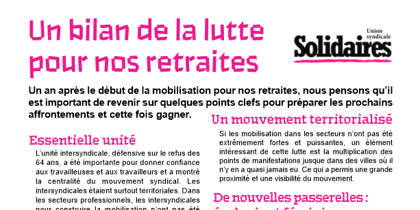 Pour se replonger dans la mobilisation, le dossier regroupant une partie importante des productions de Solidaires pendant la mobilisation :