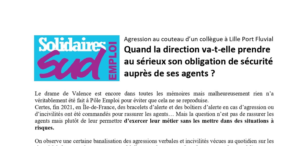 Agression au couteau d'un agent de Pôle emploi à Lille