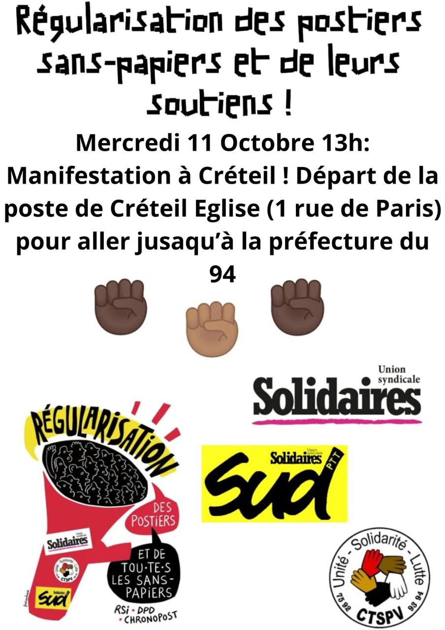 Avec les travailleurs sans-papiers du piquet Chronopost Alfortville ! : Manifestation le mercredi 11 octobre 2023 à Créteil