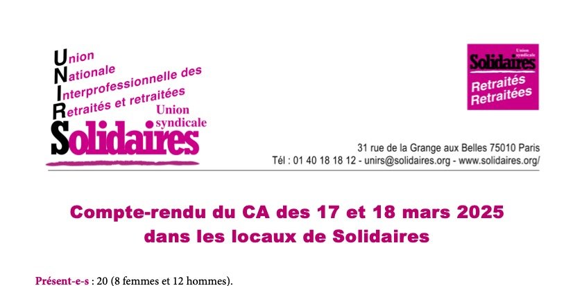 Voici le compte-rendu complet du premier CA après l'AG. Il s'est tenu sur deux jours, les 17 et 18 mars 2025.