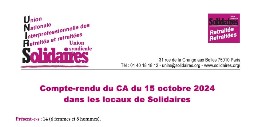 III – Préparation de l’AG de l’UNIRS du mercredi 11 décembre 2024.