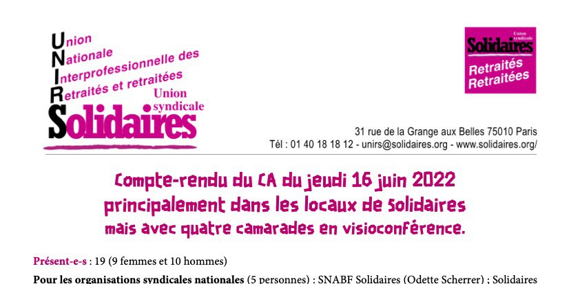 - Préparation de la rencontre des 9 organisations de retraité·e·s le mardi 28 juin 2022.