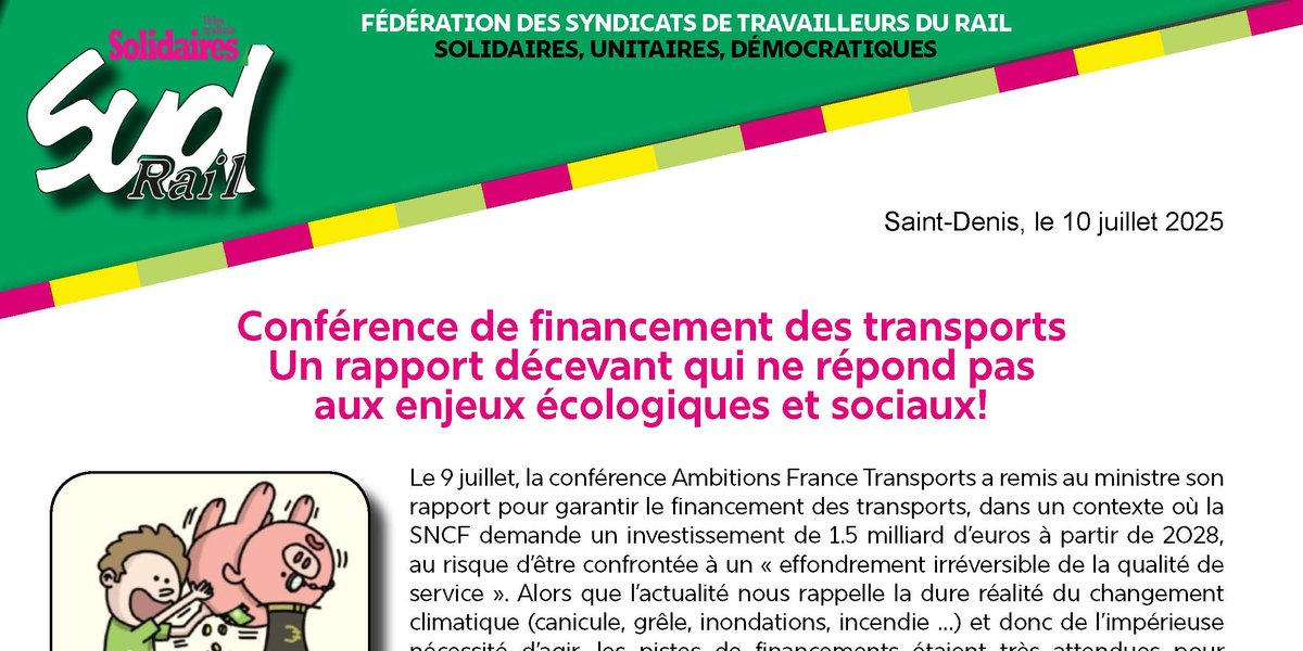 Le 9 juillet, la conférence Ambitions France Transports a remis au ministre son rapport pour garantir le financement des transports, dans un contexte où la SNCF demande un investissement de 1.5 milliard d’euros à partir de 2028, au risque d’être confrontée à un « effondrement irréversible de la qualité de service ».