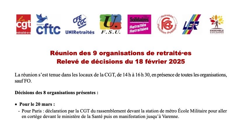 Relevé de décisions du 18 février 2025 des 8 organisations de retraité·es