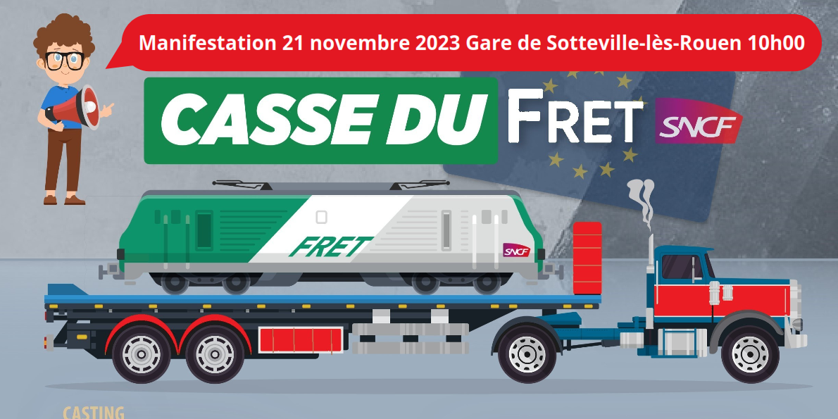 A l'initiative de SUD-Rail, un rassemblement unitaire est organisé le mardi 21 novembre à Sotteville-lès-Rouen. La position des syndicats CGT, UNSA, SUD-Rail, CFDT, et FO est claire : nous rejetons catégoriquement et unitairement le plan de liquidation de Fret SNCF. Ce n’est pas inéluctable.