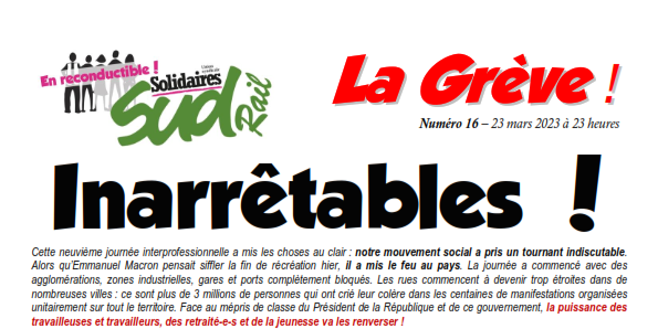 Cette neuvième journée interprofessionnelle a mis les choses au clair : notre mouvement social a pris un tournant indiscutable. Alors qu’Emmanuel Macron pensait siffler la fin de récréation hier, il a mis le feu au pays. La journée a commencé avec des agglomérations, zones industrielles, gares et ports complètement bloqués. Les rues commencent à devenir trop étroites dans de nombreuses villes : ce sont plus de 3 millions de personnes qui ont crié leur colère dans les centaines de manifestations organisées unitairement sur tout le territoire. Face au mépris de classe du Président de la République et de ce gouvernement, la puissance des travailleuses et travailleurs, des retraité-e-s et de la jeunesse va les renverser !