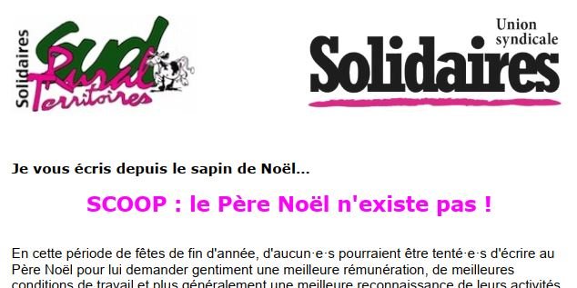 Alors plutôt qu'un courrier à un personnage imaginaire, préparons de larges mobilisations pour enfin faire barrage aux politiques ultra-libérales destructrices de nos conquêtes sociales passées !