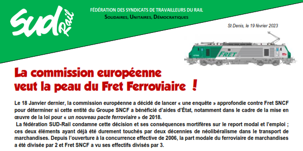 La fédération SUD-Rail condamne cette décision et ses conséquences mortifères sur le report modal et l’emploi ; ces deux éléments ayant déjà été durement touchés par deux décennies de néolibéralisme dans le transport de marchandises. Depuis l’ouverture à la concurrence effective de 2006, la part modale du ferroviaire de marchandises a été divisée par 2 et Fret SNCF a vu ses effectifs divisés par 3.