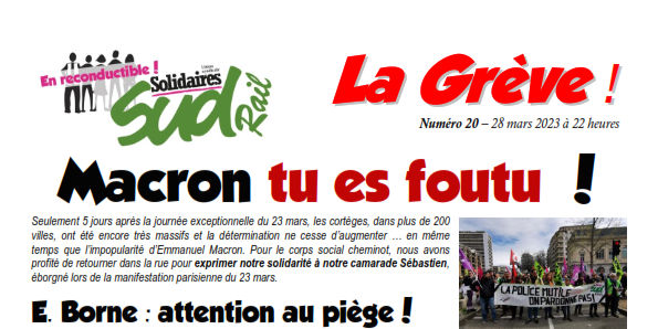 La Première Ministre vient d’annoncer qu’elle recevrait les organisations syndicales en début de semaine prochaine. Nous espérons qu’elle propose cette rencontre pour annoncer le retrait de cette contre-réforme ; sinon cela ne sert à rien. Notre patience a déjà atteint ses limites. Si Elisabeth Borne continue de mépriser notre colère en ne répondant pas à notre revendication principale … elle n’aura plus d’autre occasion pour sortir de cette crise